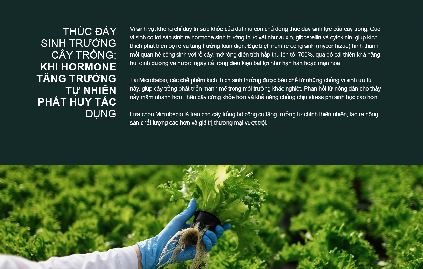 Lựa chọn Microbebio là trao cho cây trồng bộ công cụ tăng trưởng từ chính thiên nhiên, tạo ra nông sản chất lượng cao hơn và giá trị thương mại vượt trội.