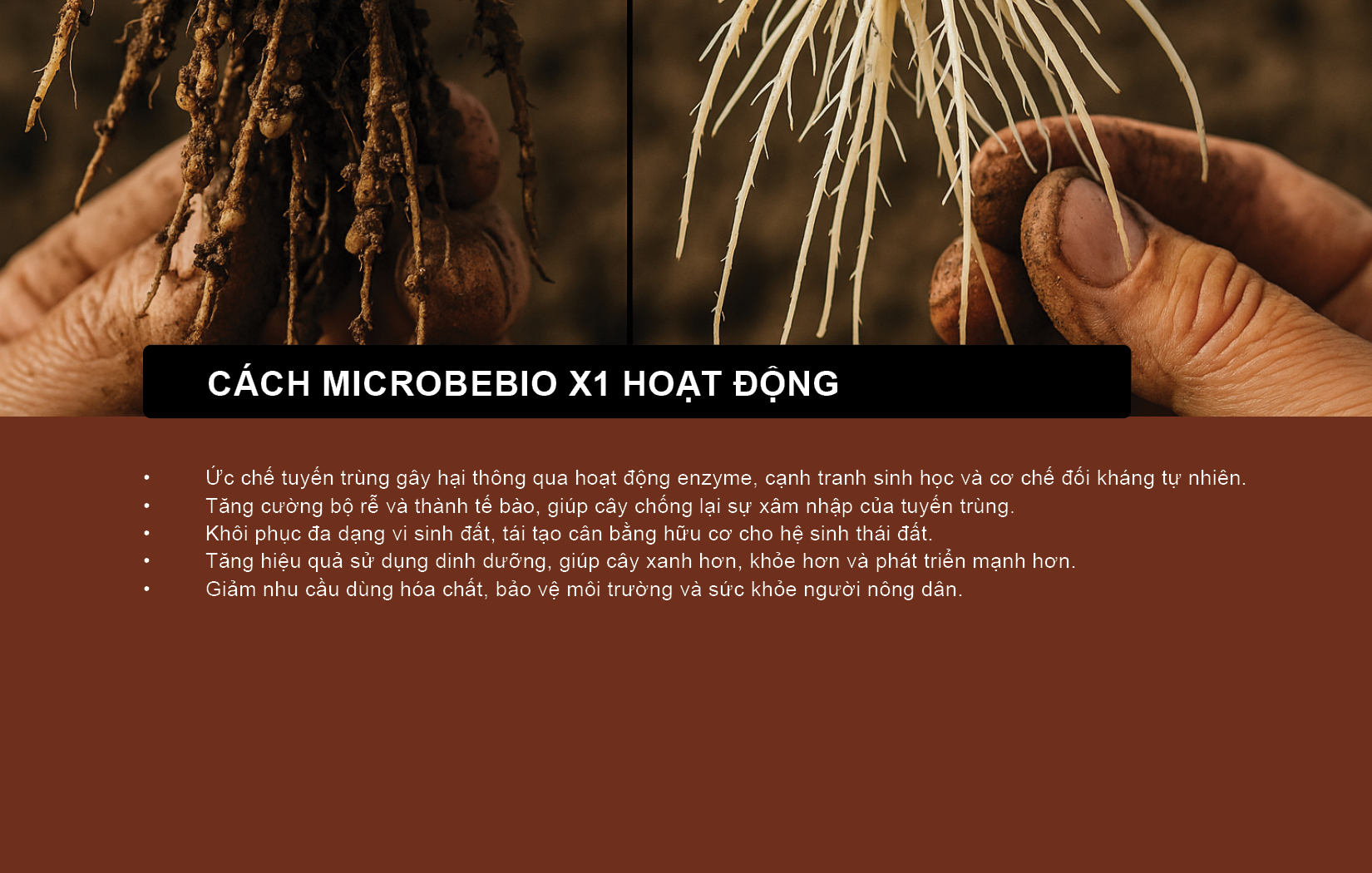 MicrobeBio X1 – Công Thức Vi Sinh Tiên Tiến Kiểm Soát Tuyến Trùng & Tăng Cường Sức Sống Bộ Rễ