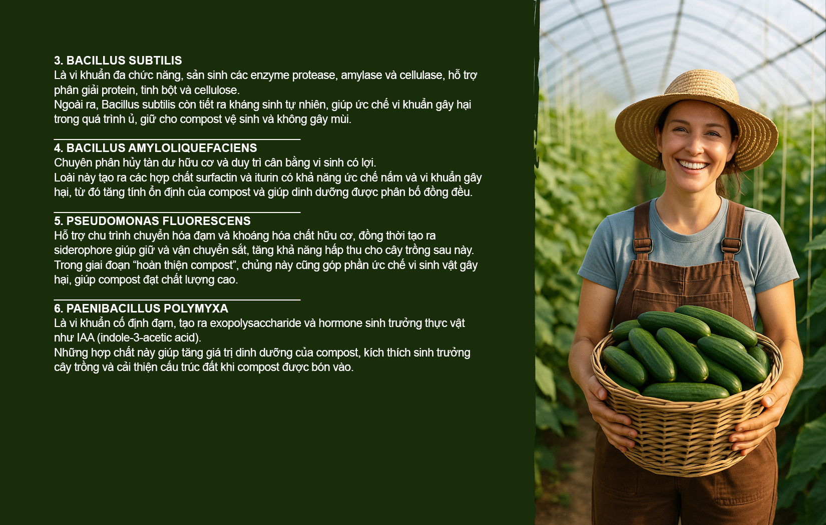 Trong giai đoạn “hoàn thiện compost”, chủng này cũng góp phần ức chế vi sinh vật gây hại, giúp compost đạt chất lượng cao.