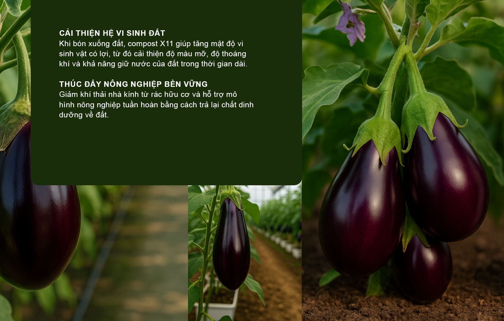 Khi bón xuống đất, compost X11 giúp tăng mật độ vi sinh vật có lợi, từ đó cải thiện độ màu mỡ, độ thoáng khí và khả năng giữ nước của đất trong thời gian dài.