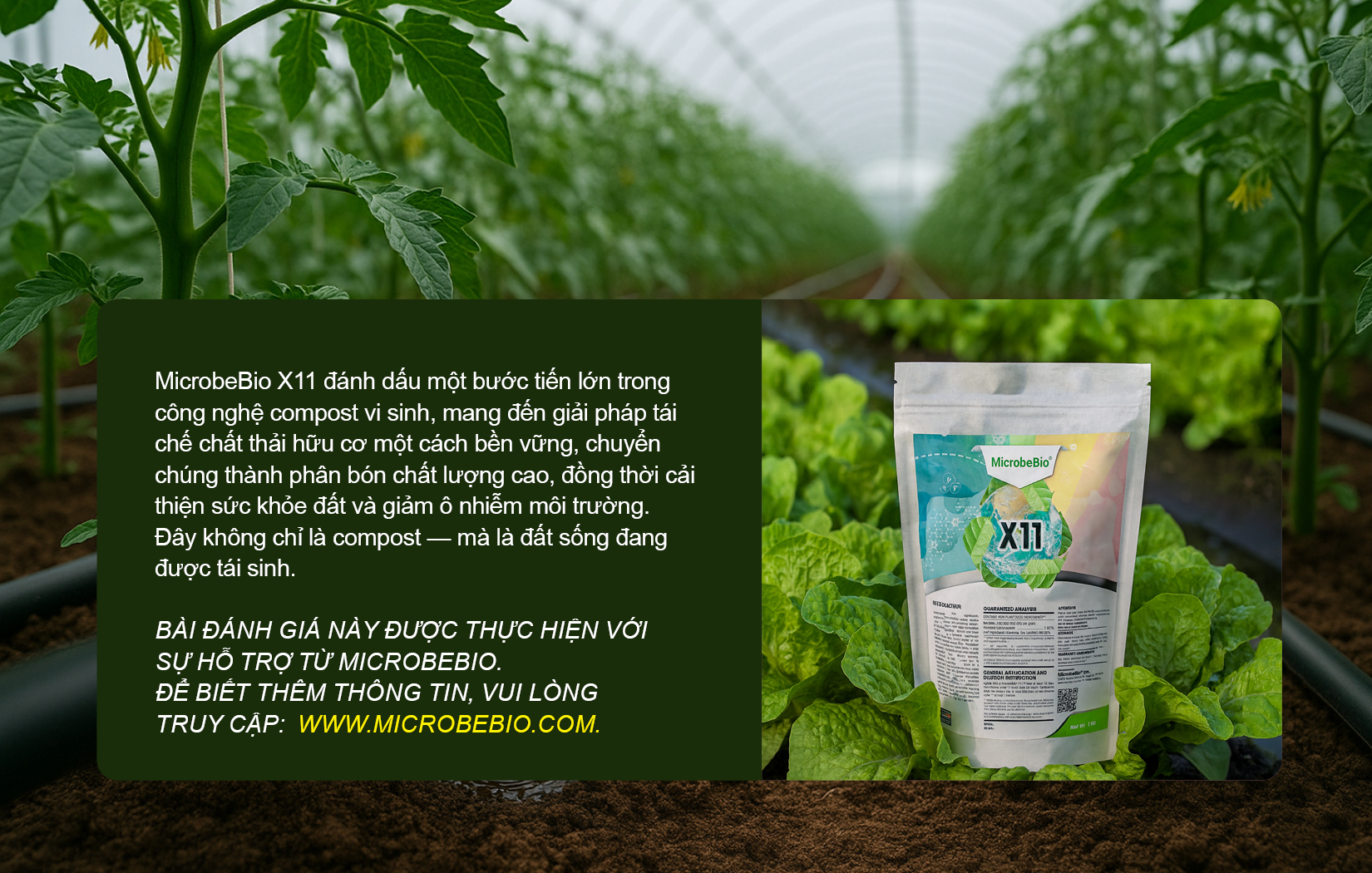 MicrobeBio X11 đánh dấu một bước tiến lớn trong công nghệ compost vi sinh, mang đến giải pháp tái chế chất thải hữu cơ một cách bền vững, chuyển chúng thành phân bón chất lượng cao, đồng thời cải thiện sức khỏe đất và giảm ô nhiễm môi trường.