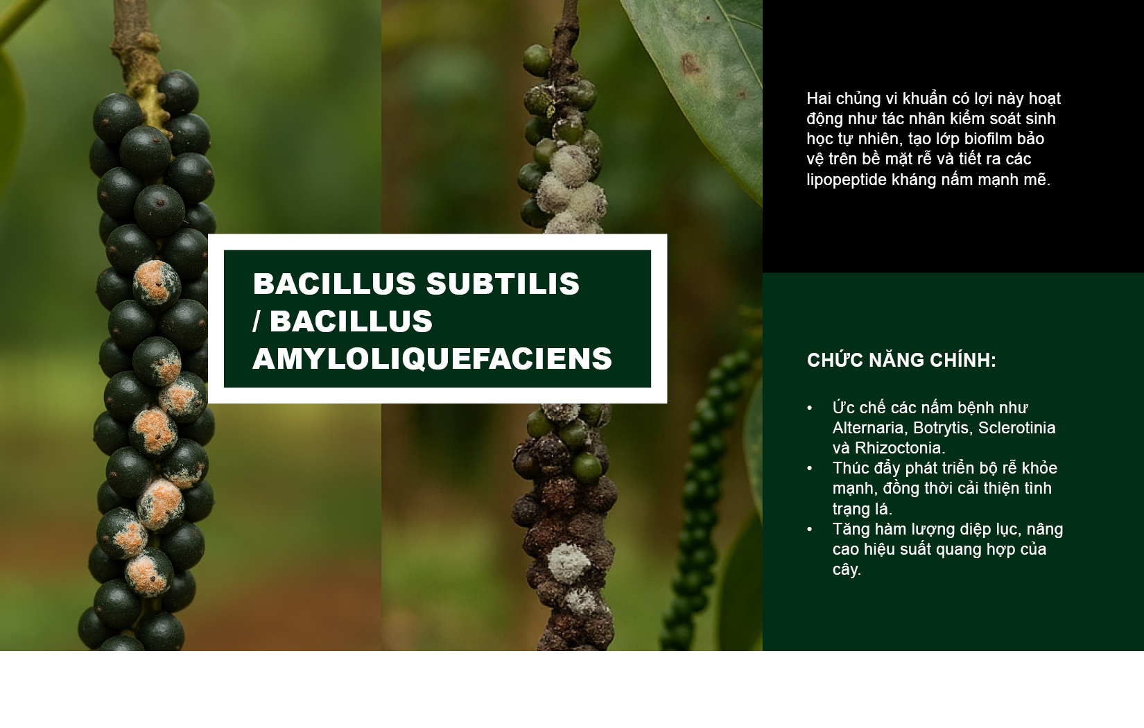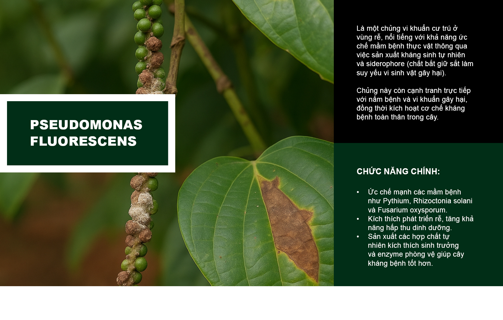 Chủng này còn cạnh tranh trực tiếp với nấm bệnh và vi khuẩn gây hại, đồng thời kích hoạt cơ chế kháng bệnh toàn thân trong cây.