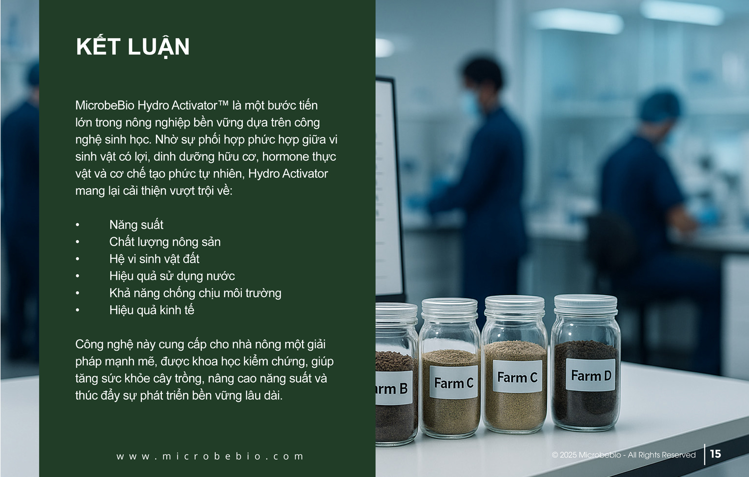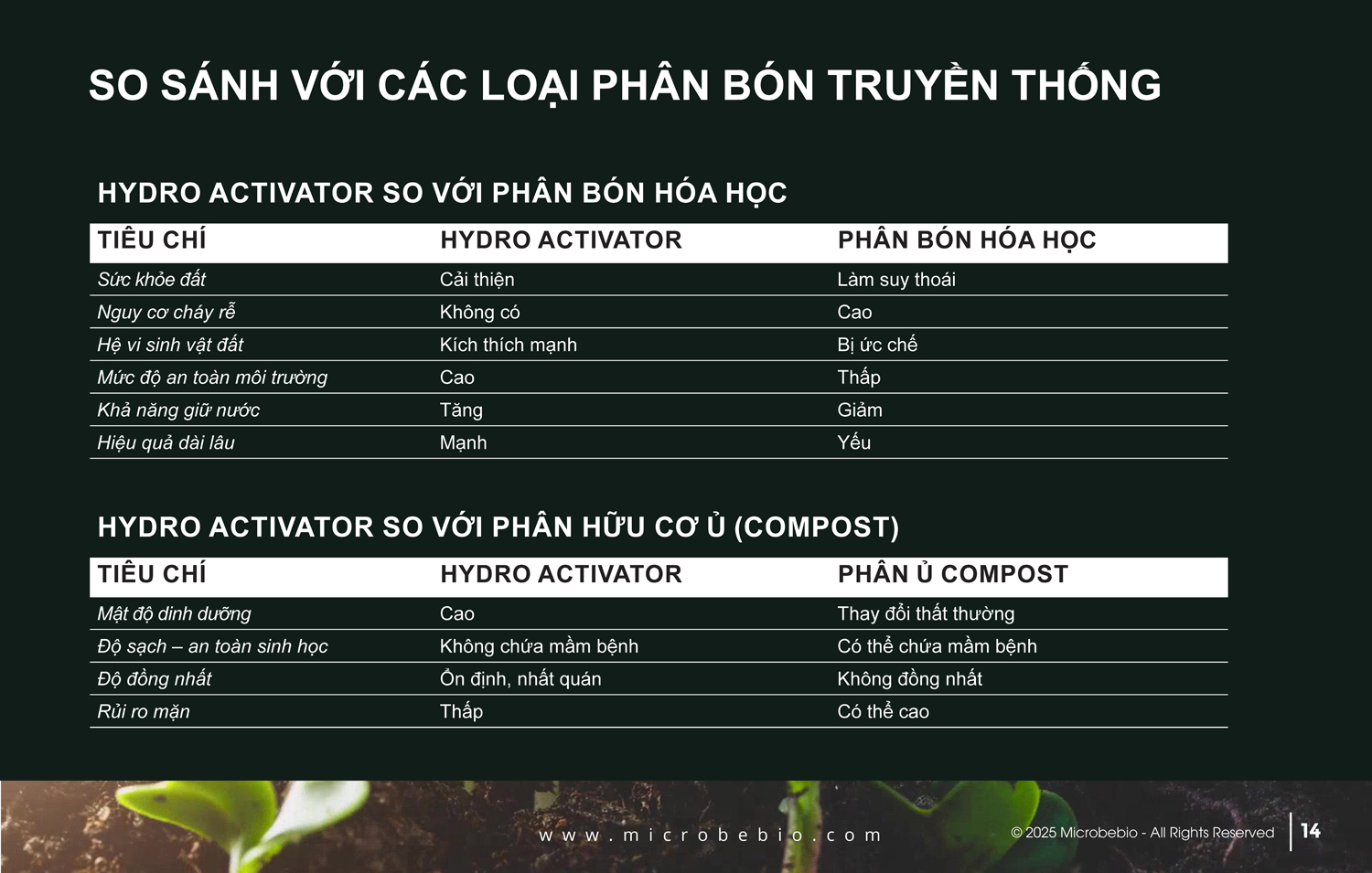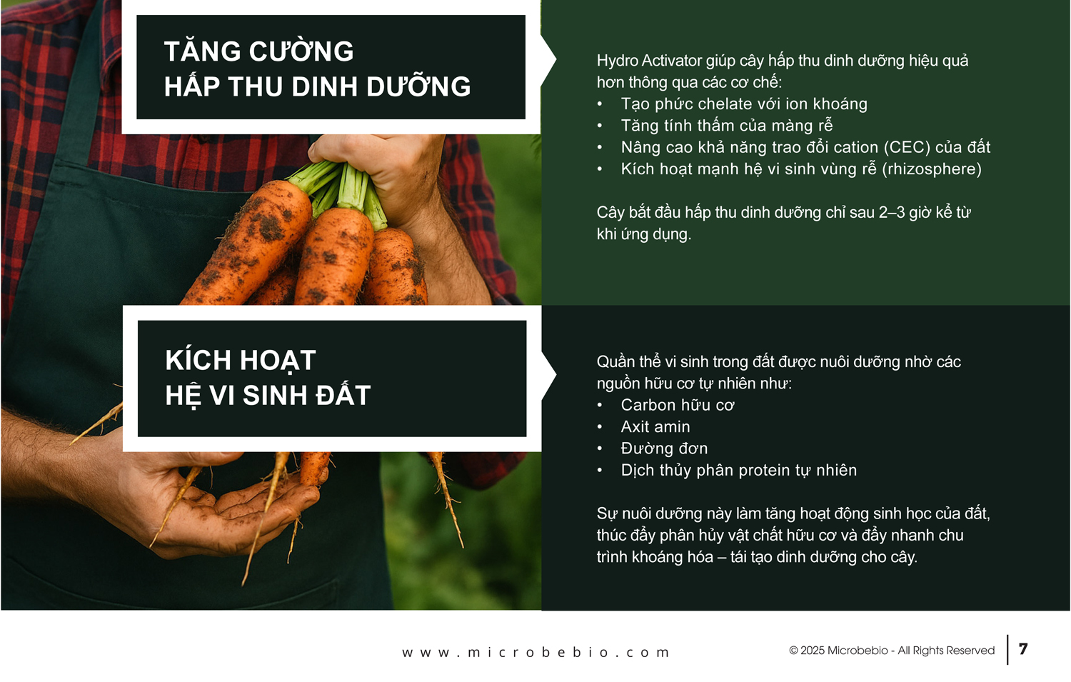 Khi bạn có một loại phân bón hoạt động đúng với hệ sinh thái đất, bạn sẽ có được kết quả xuất sắc nhờ việc kích hoạt vi sinh vật, những sinh vật này đóng vai trò như chất xúc tác thúc đẩy quá trình lưu chuyển các chất chuyển hóa, giúp đất trở nên hoạt động sinh học hiệu quả hơn.