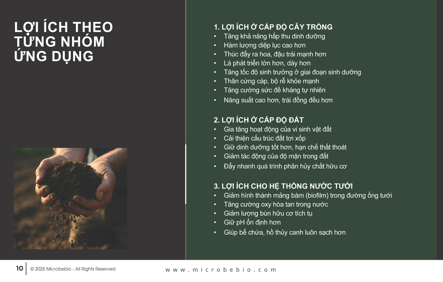 Những lợi ích quan trọng của phân bón hữu cơ Microbebio bao gồm: